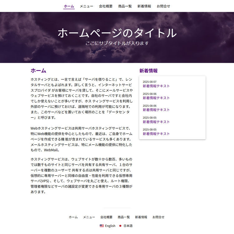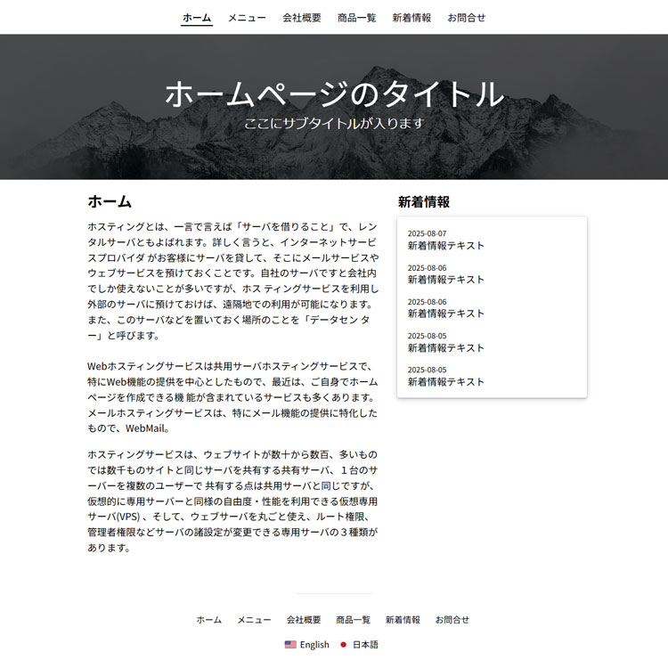 このページは、株式会社大塚商会「法人向けホスティングサービス アルファメール2」ホームページ簡易作成のテーマ一覧ページです。